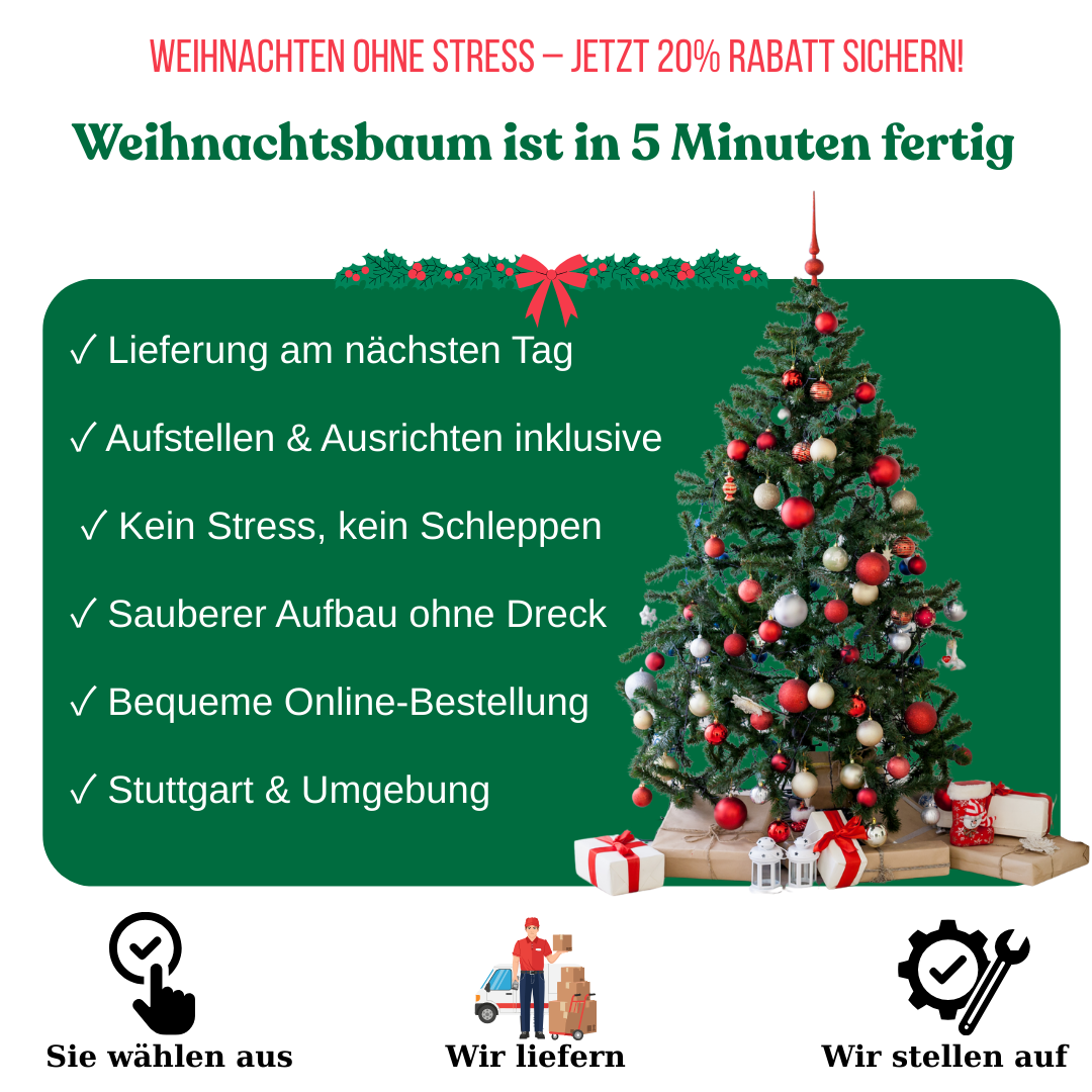 Wir stellen Ihren Baum sicher auf, richten ihn aus und sorgen dafür, dass alles perfekt steht.