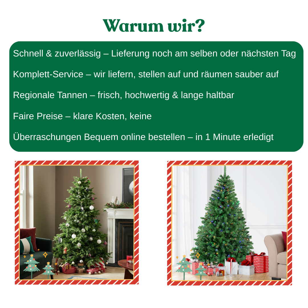 Wir wählen jedoch immer einen schönen, dichten und frischen Baum der bestellten Größe aus.